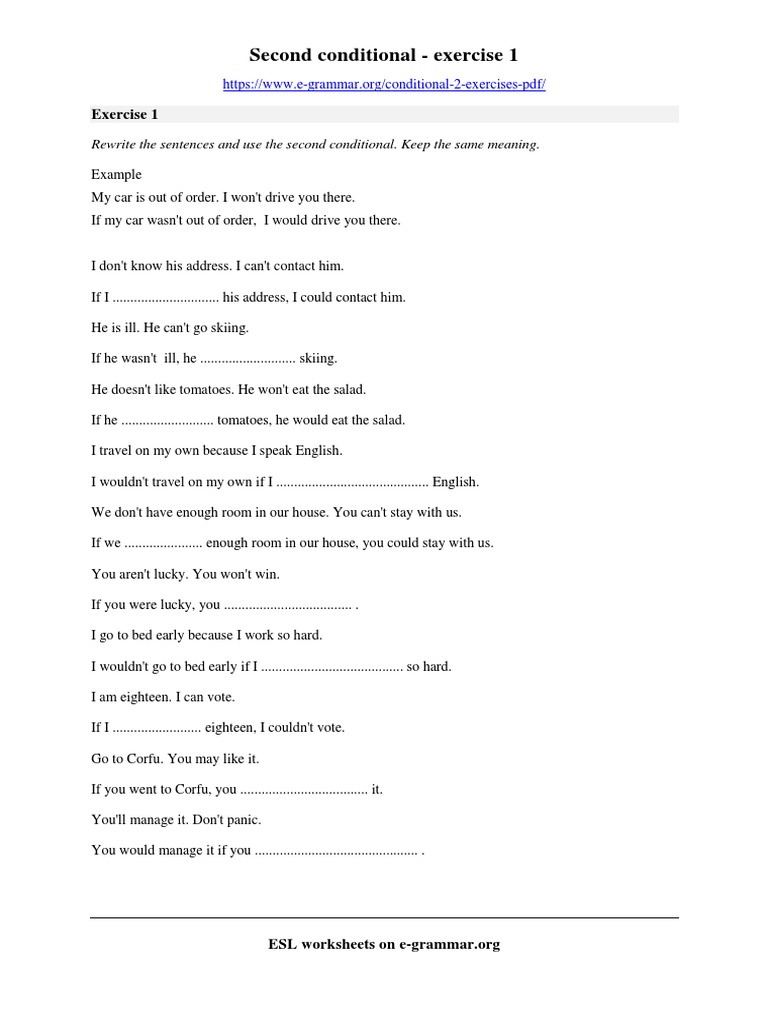 Conditional sentences - type II. This second conditional exercise checks your ability to use the second conditional in regular sentences negative sentences and. Rewrite the sentences and keep the same meaning.