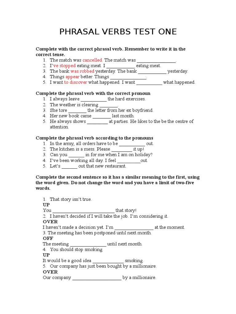 Phrasal Verbs Exercise 1. Phrasal Verbs Exercise 2. DOWNLOAD English Grammar Exercises With Answers Doc.